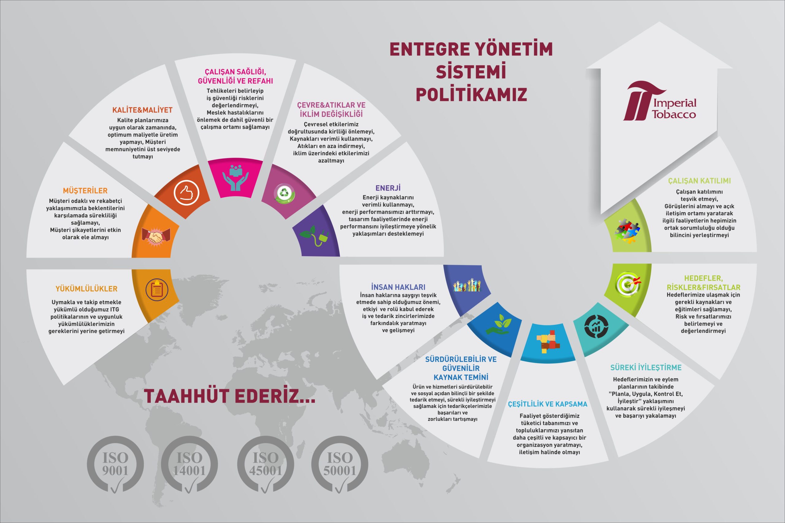 Vizyon, misyon, ilke ve değerlerimize göre oluşturduğumuz Kalite, Çevre, İş Sağlığı Güvenliği ve Enerji Yönetim Sistemlerinden oluşan Entegre Yönetim Sistemi ile yasal ve diğer gereklilikler doğrultusunda hareket etmeyi, paydaşlarımızın ihtiyaç ve beklentilerini karşılamayı ve güvenini kazanmayı, topluma, çevreye ve çalışanlarımıza karşı olan sorumluluklarımızı yerine getirmeyi, hizmet kalitemizi sürekli iyileştirmeyi ve sürdürülebilir kalkınmaya katkıda bulunmayı amaçlıyoruz.